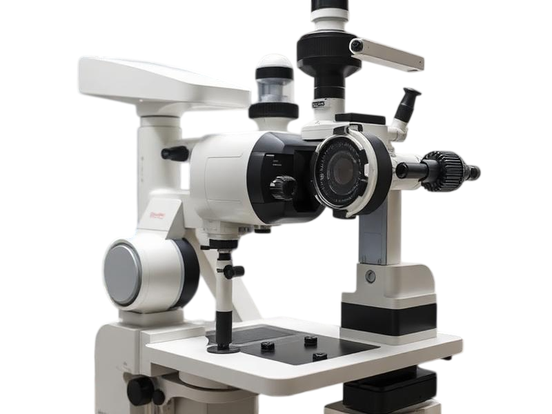 The doctor uses a slit-lamp bio-microscope to examine the anterior and posterior segments of your eyes in clinical detail — evaluating cornea, lens, vitreous, retina, and optic nerve with high-magnification optics.